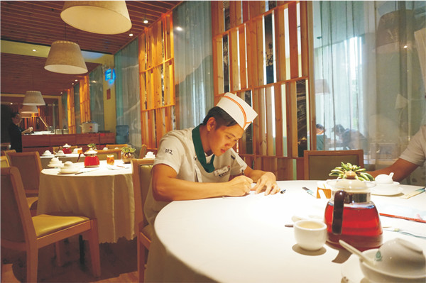 古雅鵬從鴻雁鵝莊的小小炒鍋師傅到星夜蜜大酒樓任部長,現(xiàn)在已經(jīng)是廣西桂小廚的廚師長,深刻感受到廚藝是廚師立足的關鍵,但要成為一名優(yōu)秀的廚師必須具備良好的廚德。培養(yǎng)好的廚德才能使廚師走向成功,這正是廣西華南烹飪技工學校的老師言傳身教的教誨。