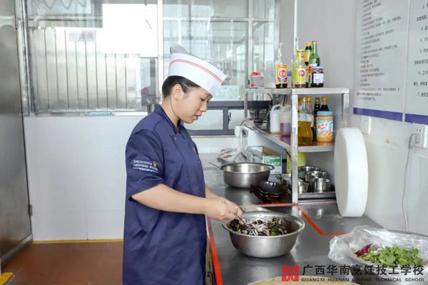 馮蘇葵從小就喜歡烹飪,10歲就開始學(xué)會(huì)做菜,每天都堅(jiān)持給家人做飯,一向?qū)ε腼兏信d趣的她在初中畢業(yè)后,得到了家人的支持,毫不猶豫地選擇報(bào)讀廣西華南烹飪技工學(xué)校,開啟她人生的新篇章,學(xué)廚之路。