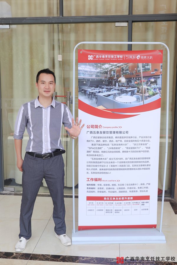 2018年,黃文川加入廣西巨星聯(lián)合投資集團,擔任出品總監(jiān)。這是一家橫向覆蓋多區(qū)域、多行業(yè),包含KTV、酒吧、餐飲、酒店、地產(chǎn)等多個項目的企業(yè)。旗下品牌“五條友燒烤大趴”是開創(chuàng)于南寧的時尚連鎖燒烤品牌,以燒烤大趴的方式將餐飲與娛樂完美的結(jié)合在一起,以全新的角度,將“燒烤文化”多元化。公司以迅雷不及掩耳之勢迅速擴張,在南寧已開有多家分店,而現(xiàn)有的門店單家月營業(yè)額達200多萬元。生意紅火,并有擴店計劃,黃文川也是忙得不亦樂乎:“下午4點多開始,一直忙到凌晨2-3點都是正常的事”。求賢若渴,他聯(lián)系上華南烹飪學(xué)校就業(yè)辦主任唐毓得,希望在后輩中招聘人才。