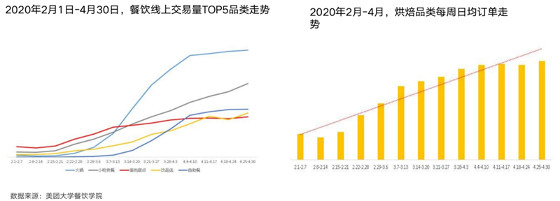 這兩點(diǎn)都得益于國內(nèi)線上消費(fèi)及全國配送服務(wù)的便捷性,短保及中保烘焙類預(yù)包裝食品成為了疫情期間線上食品類消費(fèi)前五,且日均訂單量持續(xù)上升。