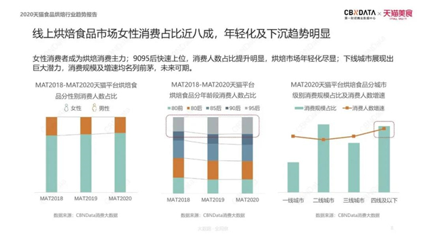 90、95后快速上位,年輕消費(fèi)人數(shù)占比提升明顯,烘焙市場年輕化盡顯。三線及以下小城展現(xiàn)出巨大潛力,消費(fèi)增速迅猛,未來可期。