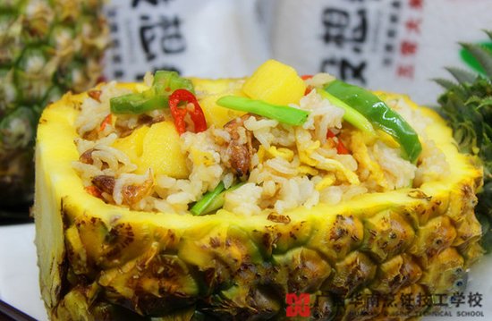 菠蘿飯,粵式菜系中的經(jīng)典飯之一。菠蘿酸酸甜甜的口感,再加蝦米的酥香、雞蛋的香滑,配一點(diǎn)蒜、紅辣椒、青辣椒,味道真是極好的!趕快學(xué)一下吧,切莫辜負(fù)了這滿大街的菠蘿喲。