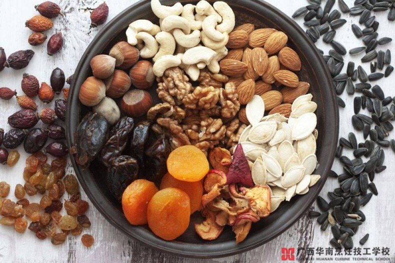 堅果也是一種很好的零食。堅果是植物的精華部分,一般都營養(yǎng)豐富,含蛋白質(zhì)、油脂、礦物質(zhì)、維生素較高,對人體生長發(fā)育、增強體質(zhì)、預(yù)防疾病有極好的功效。在選擇上,廣西華南烹飪技工學(xué)校建議原味和不開口的堅果,這樣能最大程度地保證其營養(yǎng)價值。不過由于堅果的脂肪量很高,不可食用太多,一天一把為好。
