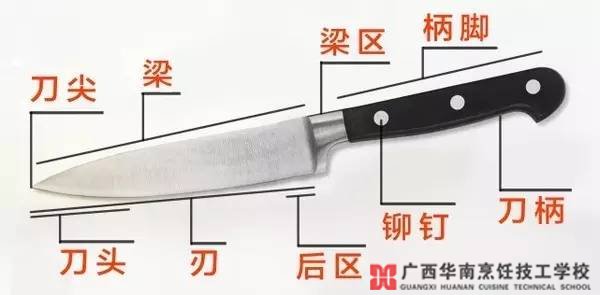 梁區(qū):刀身與刀柄之間是廚刀的梁區(qū),在大號(hào)的廚師刀上,梁區(qū)起到保護(hù)手的作用。