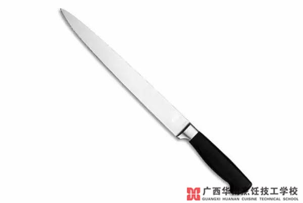 這是一種給鮮肉剔骨、去皮最理想的工具,如牛腿和整條魚。狹窄、富有彈性的刀身十分適合這項(xiàng)工作。刀身狹窄,刀頭能被充分控制,甚至可以使之傾斜180°,深入肉的內(nèi)部割斷筋絡(luò)。沿著骨頭的弧度與骨頭平行滑動(dòng)刀具,并不會(huì)因切到骨頭而使得刀鋒變鈍。