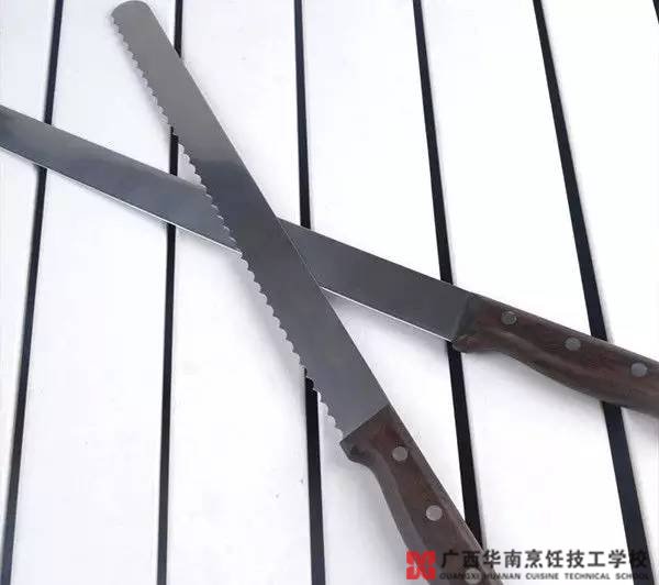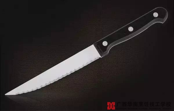 別名叫“金湯力”刀,這種刀可以避免其他的刀具受到嚴(yán)重的磨損。刀上的鋸齒可以很輕松地切開堅(jiān)硬的皮,也能安全地切開圓形的食材,不使它滾動(dòng)。比如粗大的香腸和番茄、檸檬等蔬果。
