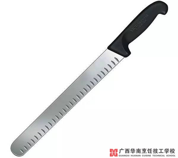 刀身同樣長達(dá)28厘米,是為切削薄片專業(yè)設(shè)計(jì)的。水平或垂直持刀,刀身的長度易于精準(zhǔn)控制。凹槽能存貯空氣,確保切刀的片與片之間不會(huì)發(fā)生粘連,是切割奶酪、冷食、生魚片以及面條等食材的理想工具。