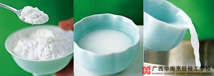 4、奶湯芡是芡汁中最稀的,又稱薄芡。一般用于燴燒的菜肴,如:麻辣豆腐、蝦仁鍋巴等。目的是使菜肴湯汁加濃一點而達到色美味鮮的要求。