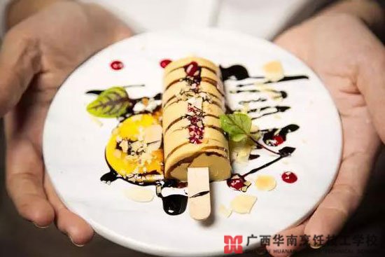 盤子居左,左叉右刀;液體在右邊,固體在左邊。廣西華南烹飪技工學校西餐專業(yè)的學生正優(yōu)雅嚴謹?shù)刂圃烀牢丁J巢粎捑挷粎捈毜淖非,既造就了西餐的可愛與精致,也讓廣西華南烹飪技工學校這樣一群人顛覆了西餐的拘謹,打造出別樣的舌尖小清新。
