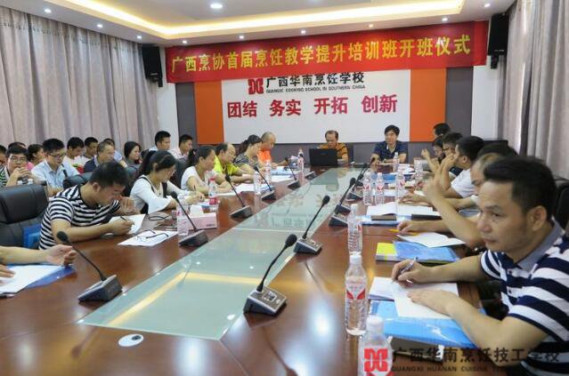 當(dāng)前餐飲行業(yè)以及烹飪職業(yè)教育發(fā)展迅猛,報讀各校烹飪專業(yè)學(xué)生日漸增多,對烹飪專業(yè)師資能力提出了更高的要求和挑戰(zhàn)。為進(jìn)一步提高烹飪專業(yè)院校教學(xué)質(zhì)量,加強(qiáng)職業(yè)院校“雙師”型師資隊伍建設(shè),提升烹飪骨干教師在烹飪課程資源開發(fā)與建設(shè)、菜品研發(fā)與創(chuàng)新設(shè)計的能力以及烹飪實操教學(xué)技能,廣西烹飪餐飲行業(yè)協(xié)會于2017年16-18日在廣西華南烹飪技工學(xué)校舉辦2017年暑期烹飪教學(xué)技能提升培訓(xùn)班。來自全區(qū)10多所職業(yè)院校的40多名教師和個別企業(yè)的總廚參加了培訓(xùn)。