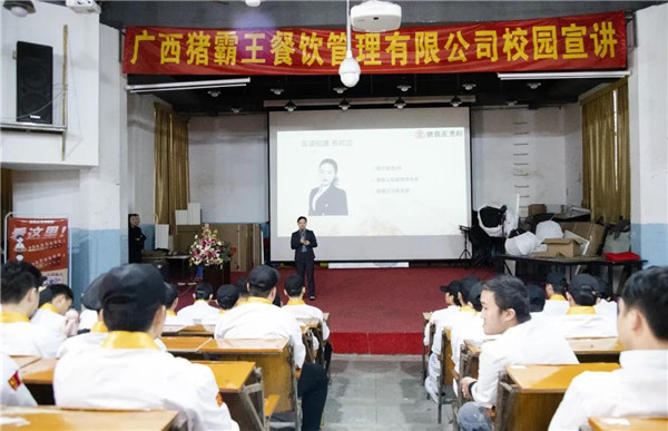 我校為了提高在校學生的就業(yè)品質(zhì),保證就業(yè)質(zhì)量,同時加強校企之間的合作,為同學們提供更多就業(yè)機會。今天,在就業(yè)指導中心的安排下,校企合作單位廣西豬霸王餐飲有限公司走進廣西華南烹飪技工學校,對即將畢業(yè)的學子們進行了企業(yè)宣講招聘會。