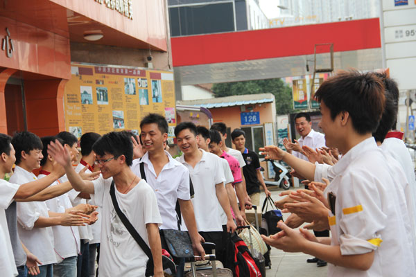 2013年6月4日,廣西華南烹飪學校學生黃吉模等9名畢業(yè)生學生赴南寧好友緣國宴飯店就業(yè),學校為其舉辦了隆重的歡送儀式,各專業(yè)的學生均齊聚校門廣場為畢業(yè)生送行;蛟S這天對廣西華南烹飪學校大廚113班的同學來說永生難忘,當鞭炮聲想起的那刻,離別的步伐在他們的行列中漫行,舍不得的離愁別緒,忘不掉的師生情誼,卻終將無法阻擋因夢想起航的激動心情。