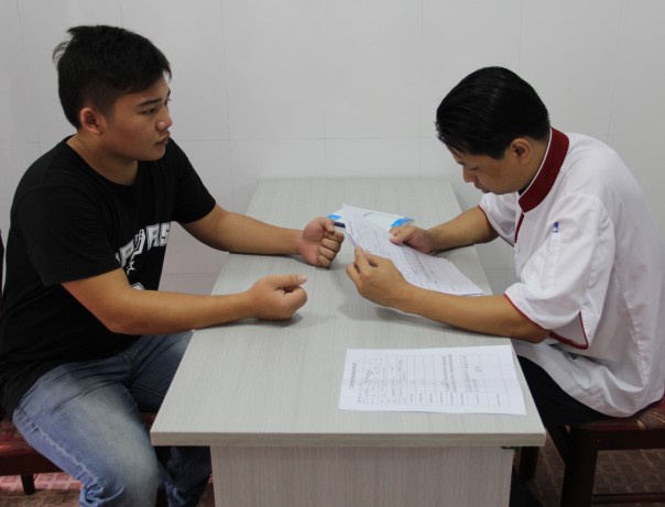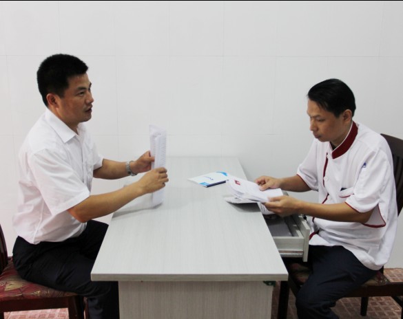 荔園山莊餐飲部郭總正在面試學生
