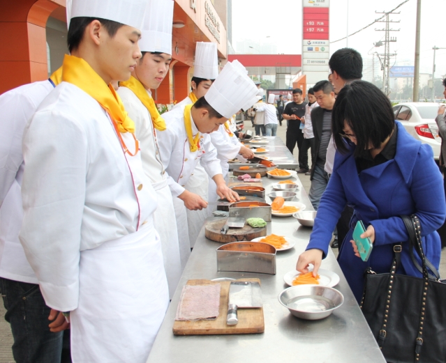 近日,南寧市好友緣國宴飯店到廣西華南烹飪學(xué)校開展招聘面試會(huì),大學(xué)路校區(qū)大廚122班的學(xué)生參加了本次招聘會(huì)。