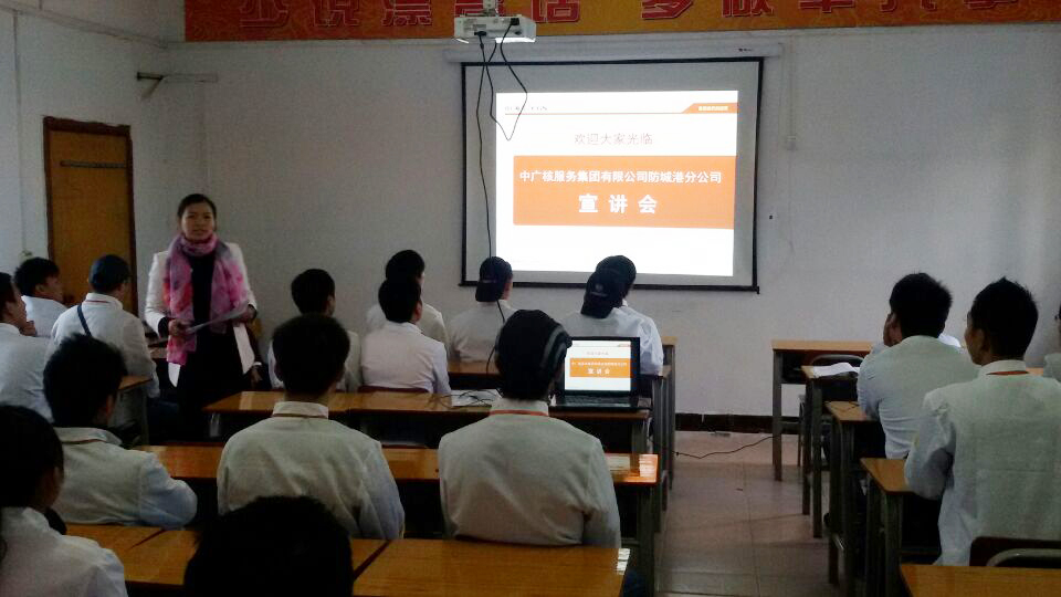 11月12日上午,我校迎來了中廣核服務集團有限公司防城港分公司招聘宣講。華南明秀校區(qū)大廚128班全體同學參加了本次的宣講會。