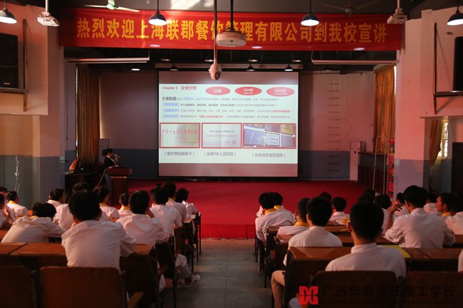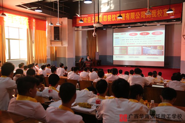 為了讓同學(xué)們覓得一份合適的工作,找到合適的人生發(fā)展平臺(tái),2017年11月3日,上海聯(lián)郡餐飲管理有限公司專(zhuān)場(chǎng)招聘會(huì)在廣西華南烹飪技工學(xué)校舉行。