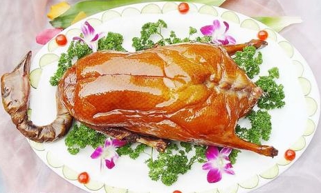 7.放入足夠炭塊,燒至熾紅無(wú)煙,然后用長(zhǎng)柄鐵叉把鵝叉住,在離火焰上約33.3厘米左右烘燒,并把鵝身不停的轉(zhuǎn)翻移動(dòng)。使受火均勻,至皮現(xiàn)深紅色內(nèi)部熟透。