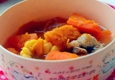 材料:排骨、玉米、南瓜、胡蘿卜、鹽、料酒、姜
