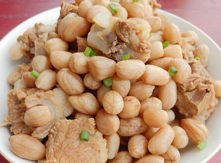 材料:排骨、姜、老抽、花生、蔥、鹽、八角