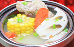 豬大骨頭、胡蘿卜、藕、玉米、食鹽、蔥、姜、料酒、白醋、白胡椒
