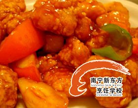 南寧新東方烹飪學校導(dǎo)讀:豬肉切成3厘米*3厘米*0.5厘米的厚片,加鹽2克、味精2克、雞蛋、生粉10克,清水10克攪拌均勻,腌漬半小時后,蘸多量生粉,備用……