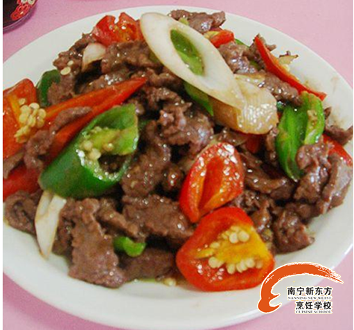 南寧新東方烹飪學(xué)校今日推薦菜譜:三椒炒牛肉