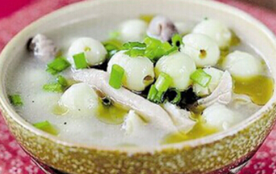食材:豬肚、蓮子、蔥、姜、紅棗、蒜苗、鹽、胡椒粉