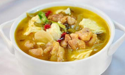 原料:雞肉、酸菜半棵、嫩豆腐一盒。