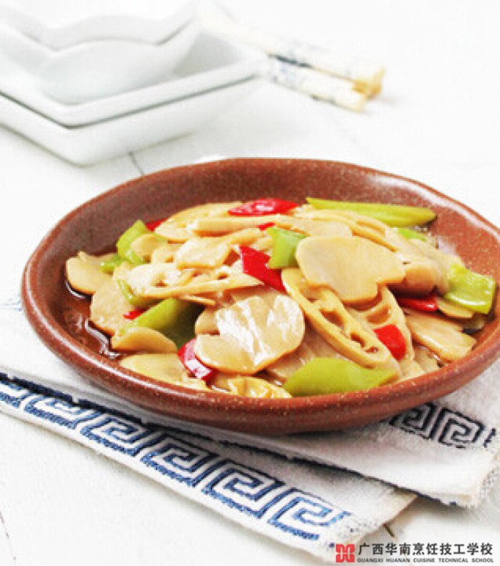 做法:1、將口蘑洗凈,用開水浸泡在碗中,1小時(shí)左右,水澄清留用,口蘑切片,青紅椒洗凈切片;