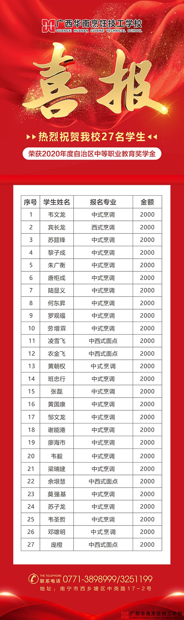 【學(xué)籍補(bǔ)錄】廣西華南烹飪技工學(xué)校2025年秋