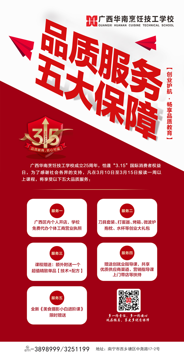 2021年,華南烹飪專業(yè)全面更新,針對當下市場行情為學子量身定制專業(yè),內容更加豐富,選擇更加多樣,滿足不同對餐飲感興趣的學子的需求,為職業(yè)教育貢獻力量,為餐飲市場培養(yǎng)優(yōu)質的人才。