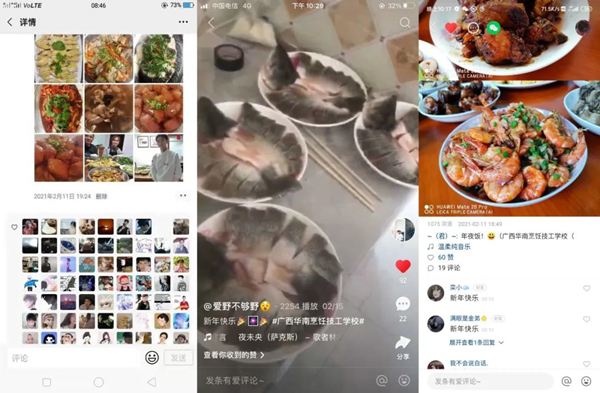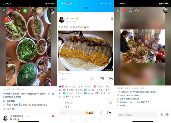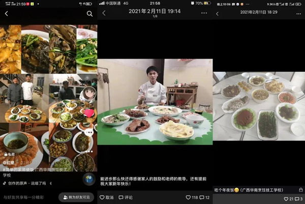 無論是拿手菜肴的制作,還是闔家團圓的溫暖場面,都是一份珍貴的回憶。年夜飯是新舊更替的見證者,更是全家人團圓歡聚的重要時刻。在這闔家團圓、幸福溫暖的時刻,華南學子們能夠通過自己在校所學的技能親手為家人做上一道菜肴,感恩家人,分享心底的喜悅,同時也向我們傳遞了溫暖和溫馨。