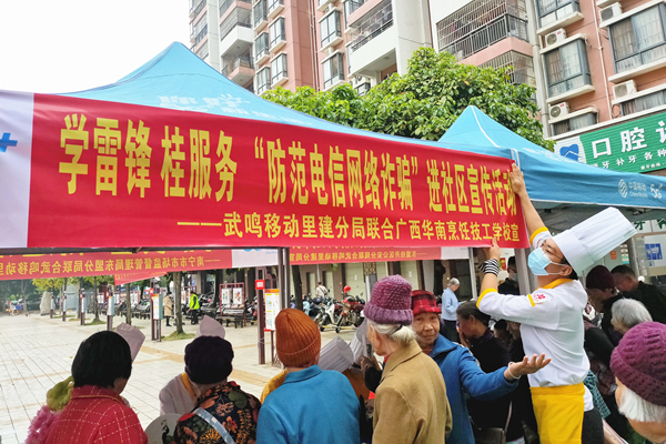 3月15日,利用“315”國際消費(fèi)者權(quán)益日的重要宣傳節(jié)點(diǎn),廣西華南烹飪技工學(xué)校聯(lián)合武鳴移動里建分局開展了“學(xué)雷鋒 桂服務(wù)‘防范電信網(wǎng)絡(luò)詐騙’進(jìn)社區(qū)宣傳活動”,共建消費(fèi)滿意城市,提升消費(fèi)者滿意度。