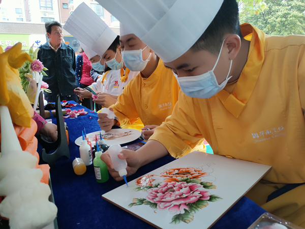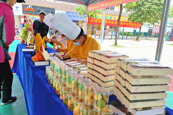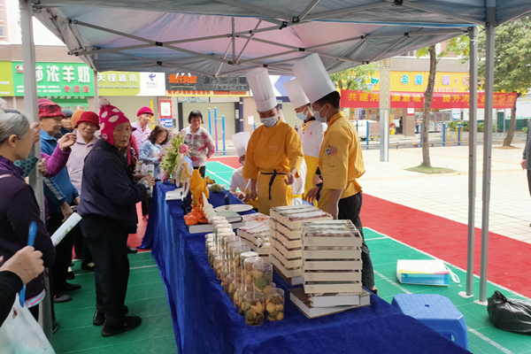宣傳活動中,我校學(xué)子來到東盟經(jīng)濟(jì)技術(shù)開發(fā)區(qū)華僑城社區(qū),展示了雕刻工藝、果醬畫技藝等,給社區(qū)居民帶去了學(xué)校的安全小食品,精美的技藝與精致的禮品收獲了居民們的一致贊揚(yáng)。