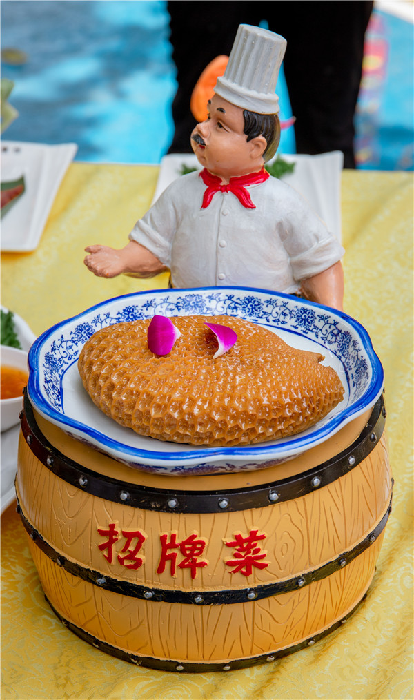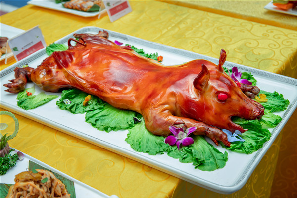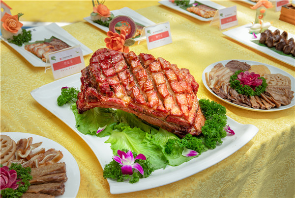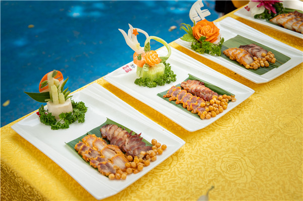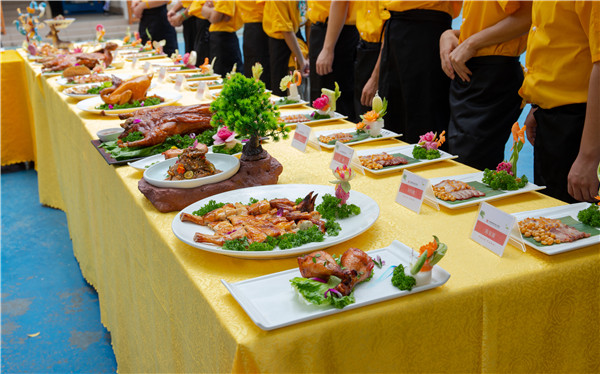 鹵水燒臘市場受眾廣泛,在高級粵菜館、各式茶餐廳到街邊、市場燒臘檔,都有燒臘的身影,而在我們平時參加的宴會中,乳豬、燒鵝、白切雞等各種燒臘拼盤也是“?”。此次考核展上就擺放了很多同學(xué)們親手制作的燒臘成品,加上精致的擺盤和點綴,幾十道以香、鮮、脆、甜、嫩為主要賣點的燒臘菜肴就呈現(xiàn)在眼前了。