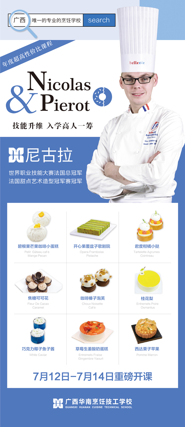 報(bào)讀經(jīng)典西點(diǎn)專業(yè)、西點(diǎn)技工專業(yè)、西餐主廚專業(yè)、西餐技工專業(yè)等三年制課程贈(zèng)大師課名額,你將獲得機(jī)會(huì):