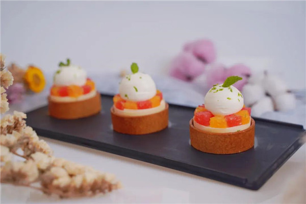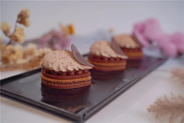 授課過程中,外教實景教學,現(xiàn)場示范互動,尼古拉為學子們親手示范了碧根果芒果咖啡小蛋糕、咖啡榛子泡芙、巧克力椰子魚子醬等法點的制作,并熱情地邀請學生自由提問,面對面交流、仔細講解配方用料、手把手教學,一步步毫無保留的教授給學子們,課堂氛圍輕松、和諧,置身這樣的西點課堂你是不是也很想一塊加入呢?