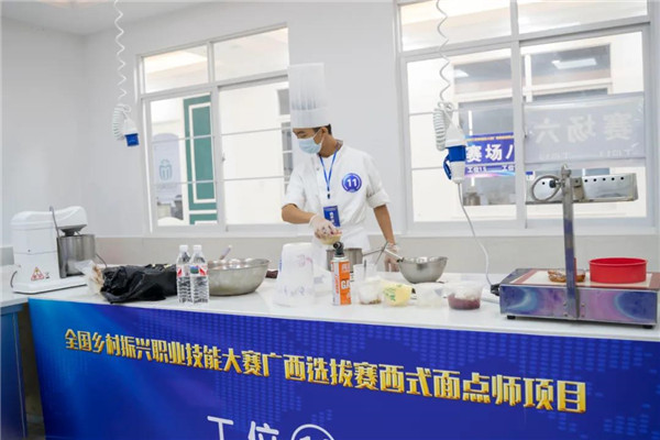 為貫徹落實習(xí)近平總書記關(guān)于技能人才工作重要指示精神,按照黨中央、國務(wù)院關(guān)于鞏固拓展脫貧攻堅成果、全面推進鄉(xiāng)村振興決策部署,發(fā)揮職業(yè)技能競賽引領(lǐng)示范作用,推動支持鄉(xiāng)村振興相關(guān)領(lǐng)域技能人才隊伍建設(shè)工作,7月30日-7月31日,2021年全國鄉(xiāng)村振興職業(yè)技能大賽廣西選撥賽西式面點師項目正式開賽。