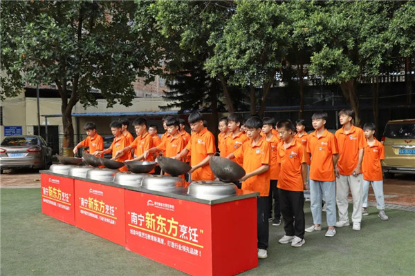 要學(xué)好廚師,翻鍋是不可忽視的重要課程。廣西華南烹飪技工學(xué)校秋季入學(xué)的新生們,已經(jīng)早早開始了翻鍋的練習(xí)。