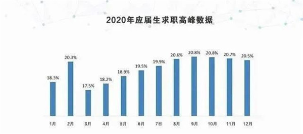 數(shù)據(jù)顯示2020應(yīng)屆生的求職高峰期在7-11月期間,14.58%的畢業(yè)生在7月到8月間求職,42.12%的畢業(yè)生在9月到11月間求職。