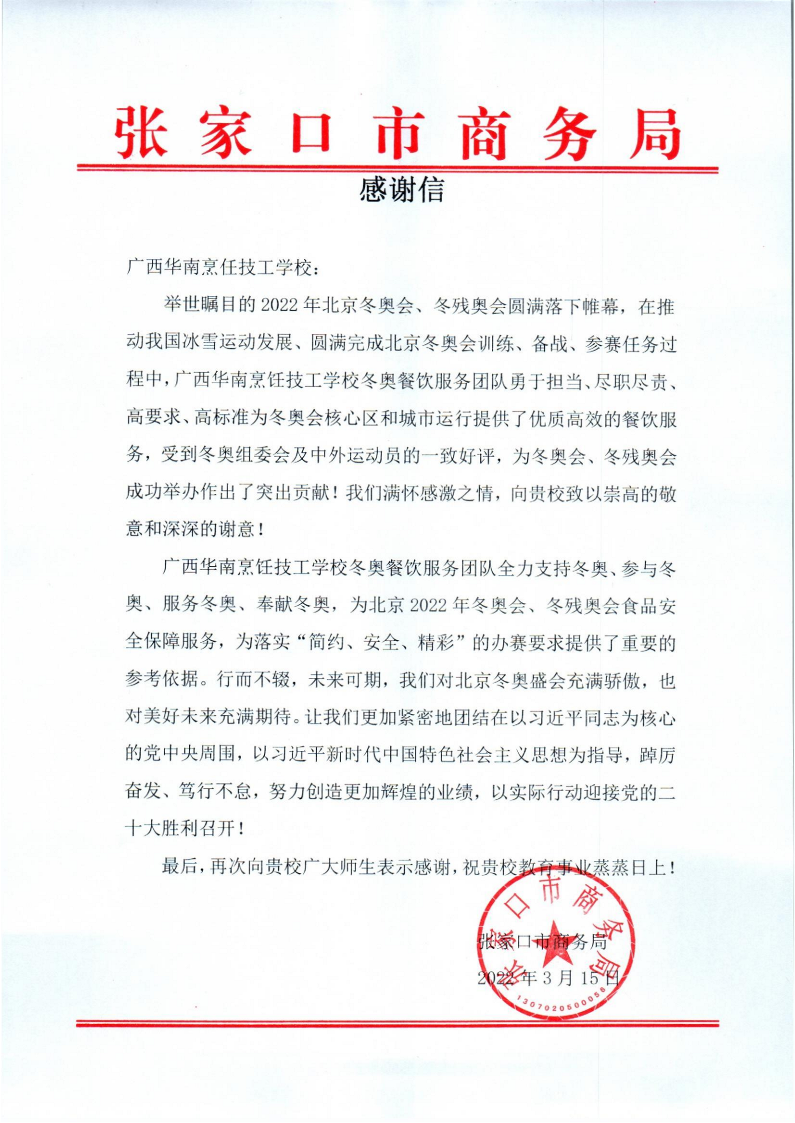 此次餐飲服務(wù)團(tuán)的帶隊(duì)老師趙龍感慨萬千:“在新冠疫情背景下,中國為世界奉獻(xiàn)了一場(chǎng)簡約、安全、精彩的奧運(yùn)盛會(huì)!作為此次餐飲服務(wù)團(tuán)的領(lǐng)隊(duì)老師,我為參與此次服務(wù)的華南學(xué)子們感到驕傲和自豪,希望華南學(xué)子們能夠繼續(xù)保持這種努力、勤懇的精神,在未來成為更加優(yōu)秀的廚師。”