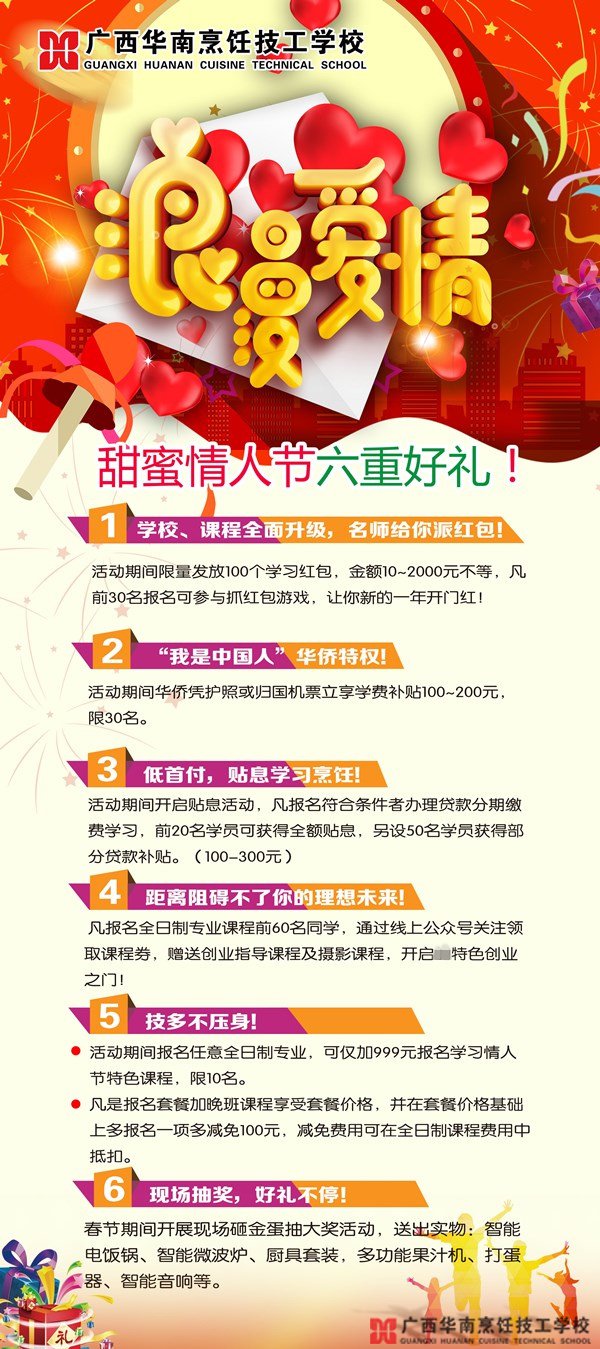 如此羅曼蒂克的日子,你想好怎么跟你的那個(gè)TA度過(guò)、怎么撒狗糧了嗎?還沒(méi)想好沒(méi)關(guān)系,廣西華南烹飪技工學(xué)校已經(jīng)幫你想好啦!