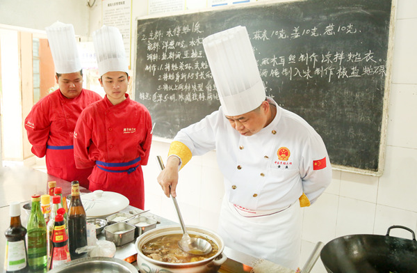 2019年3月13日上午,廣西華南烹飪技工學(xué)校“大師在身邊”公開課如期舉行,由黃盛大師主講。