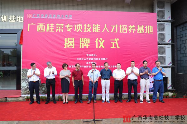 2019年5月31日上午,廣西桂菜專(zhuān)項(xiàng)技能人才培養(yǎng)基地在廣西華南烹飪技工學(xué)校正式揭牌。廣西人力資源和社會(huì)保障廳領(lǐng)導(dǎo),廣西烹飪協(xié)會(huì)領(lǐng)導(dǎo)、桂菜大師、合作單位領(lǐng)導(dǎo)等共100多人參加了揭牌儀式。
