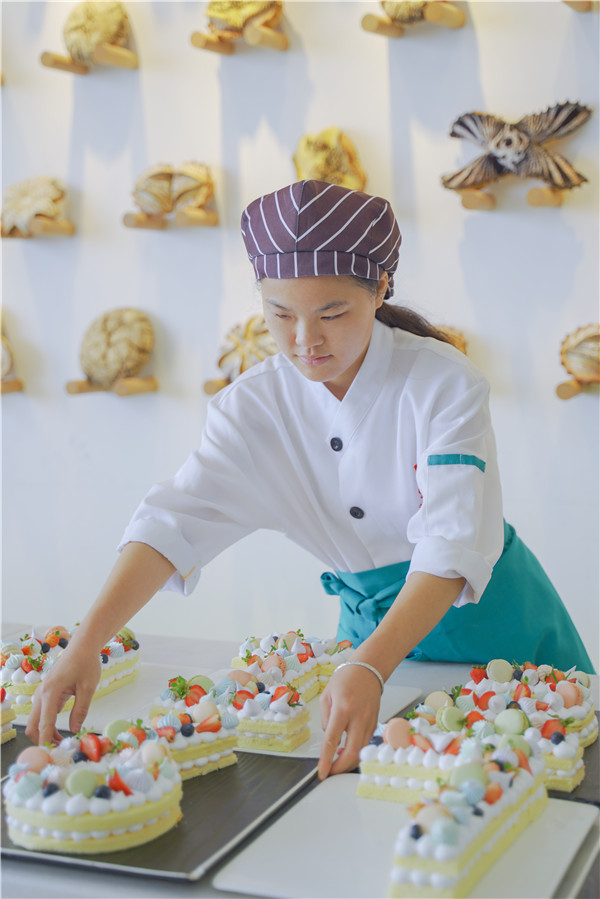 “我特別喜歡面包,感覺自己能做出好的成品,很開心。”當(dāng)面粉在她手里成為一件件精美的食物后,她有了學(xué)習(xí)的成就感,努力地一步步勇往直前。