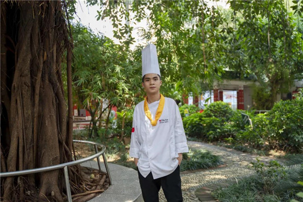 在華南烹飪的學(xué)習(xí)讓他掌握了中餐烹飪的基本功,這其中的秘訣就是在于通過(guò)反復(fù)練習(xí)來(lái)提高技能。從簡(jiǎn)單的食材到更復(fù)雜的菜品,到學(xué)做宴席,阿威表示很喜歡現(xiàn)在的生活:“現(xiàn)在自己拿到菜譜也能大概知道一道菜要如何處理和烹制。”趁課余時(shí)間還可以學(xué)習(xí)雕刻等選修課,凡是能比昨天更進(jìn)步一點(diǎn),他就覺(jué)得有成就感,勤奮起來(lái),就越學(xué)越喜歡,因此每天都過(guò)得非常充實(shí)。