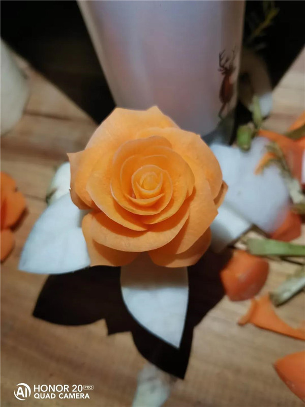“沒有順利沿著高考途徑走向音樂之路,那段時間我整個人都處于較為浮躁的情緒當中。”唐江尚枝表示,來到華南烹飪之后,他的格局得到了提高,視野得到了開拓,而內心卻逐漸安靜下來,沉浸在學技術的世界里。特別是在韋格啟老師的指導教學下,原本只是自己沒章法的琢磨,到幾分鐘就能雕刻出一朵蘿卜花,成就感十足。