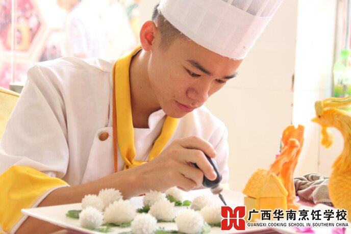 在廣西華南烹飪學(xué)校學(xué)習(xí)過程中,有著“美食廚師”愿望的同學(xué)們一直都在堅持,追求美味的夢。而且在日積月累的學(xué)習(xí)與經(jīng)驗中明白,美食需要專業(yè),專業(yè)在于創(chuàng)新,創(chuàng)新基于基本功。涂序鳳大師曾經(jīng)說過:“只有保持一種良好的心態(tài),樹立信心,努力學(xué)習(xí),學(xué)到更多技能,才可以創(chuàng)造美食和美好的明天。”現(xiàn)如今,每當看到同學(xué)們整齊快速的刀工,高難度、高水準的翻炒,活靈活現(xiàn)的雕刻,完美精致的冷拼,彷佛已經(jīng)實現(xiàn)自己“美食廚師”的愿望。
