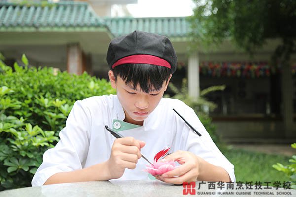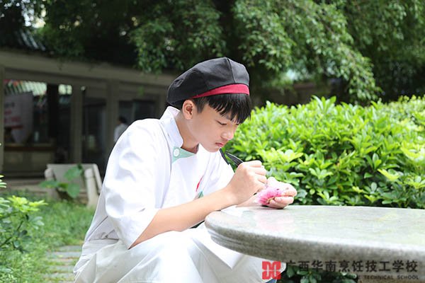覃生榕喜歡學(xué)熱菜和雕刻,盡管對(duì)雕刻不是很擅長(zhǎng),但他卻不怕困難,他說到:“堅(jiān)持下去,不會(huì)的也要學(xué)。”來到廣西華南烹飪學(xué)校,他表示學(xué)到了很懂以前不懂的東西,自己的技術(shù)和心態(tài)都得到了提升,這也是一個(gè)成長(zhǎng)的過程。