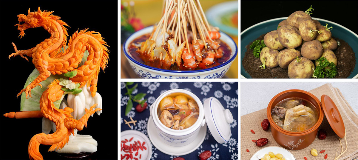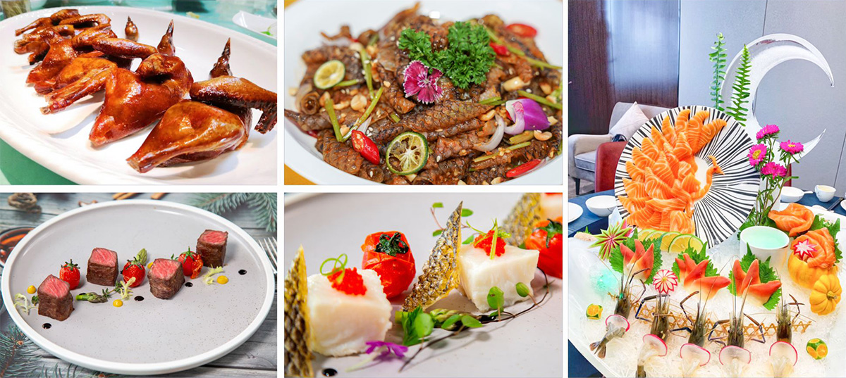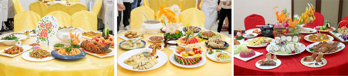 技能拓展 | 八大菜系經(jīng)典名菜:熟練掌握360道經(jīng)典名菜; 雕刻提高:花好月圓、孔雀迎賓、海底世界等多款食品雕刻學習; 中點階段:豬仔包、叉燒包、蝦餃、荷花酥等多款爆款中點產(chǎn)品; 拼盤階段:什錦拼盤、海南風光、迎客松、蝶戀花等多個品種; 干貨漲發(fā)階段:掌握干貨原材料的漲發(fā)方法及對應(yīng)的實際菜品制作方法; 涼菜階段:掌握口水雞、麻辣雞爪、刺身拼盤、夫妻肺片等多款涼菜制作方法; 糖藝階段:馬蹄蓮、玫瑰、櫻桃、蝦等糖藝學習; 西餐階段:嫩煎牛肉眼、意大利海鮮意面、香煎鴨胸配橙汁等熱門西餐菜品學習; 面塑階段:面塑知識講解與調(diào)面,掌握花、鳥、達摩等面塑制作; 調(diào)酒階段:六大基酒理論及雪克壺使用,掌握雞尾酒、干馬天尼等多款產(chǎn)品; 西點階段:學習菠蘿包、蔬菜三明治、蛋黃酥、提拉米蘇、慕斯等多款西點產(chǎn)品; 燒鹵階段:鹵水調(diào)制及市面爆款鹵味制作; 宴席階段:掌握16個不同檔次的宴席設(shè)計與制作。 |